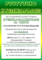 ti 12.4.2016 klo 15-19 Toivakan kirjastolla Ennen kurssia on hyvä tutustua aineistoon: www.lupakokata.fi, Kouluttajana toimii Riitta-Liisa Göös HINTA: alle 18 v. 30 €, aikuiset 35 € 4H-jäsenkortilla 5 € alennus! sis. koulutus, tentti, mahdollinen passi ja pullakahvit! Osallistujalla on oltava mukana kuvallinen henkilökortti, ajokortti tai passi, jolla todistavat henkilöllisyytensä. Kela-kortti ei kelpaa! ILMOITTAUTUMINEN viim. pe 8.4. p. 040-5118491 tai toivakka@4h.fi Järj. Toivakan 4H-yhdistys ry ja OK-opintokeskus |