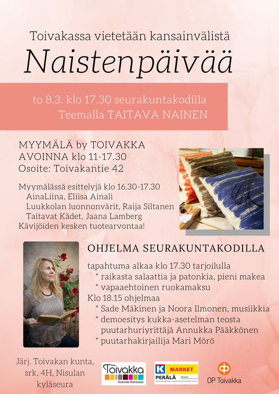 Toivakassa vietetään NAISTENPÄIVÄÄ to 8.3. klo 17.30 seurakuntakodilla