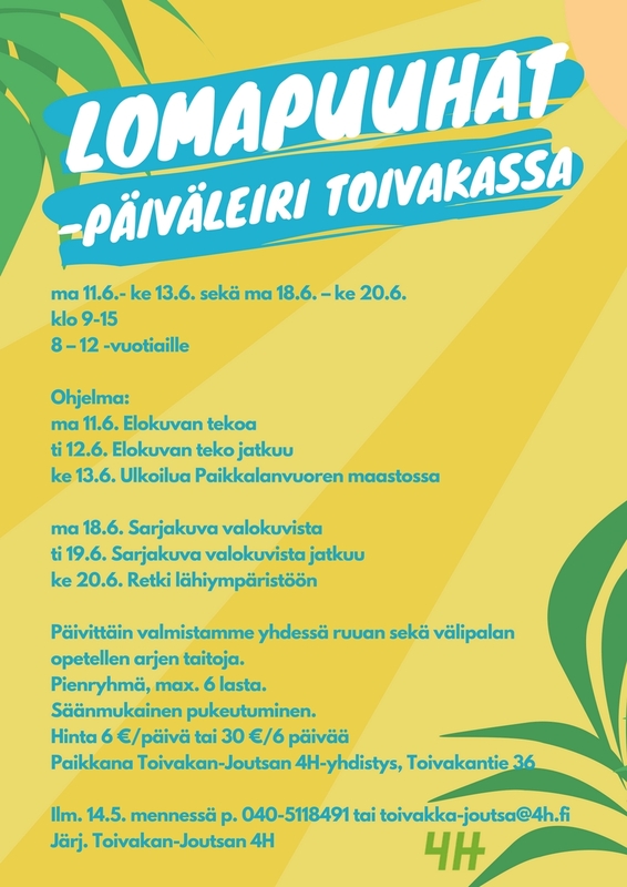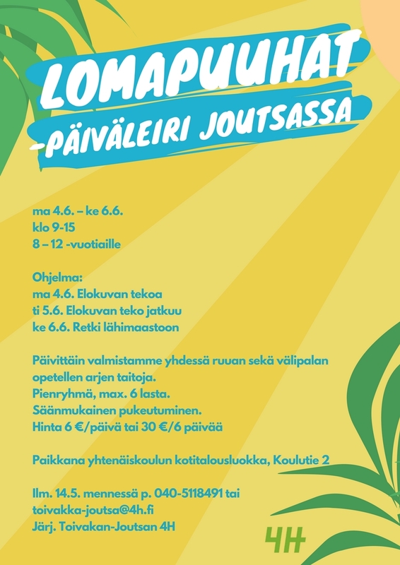 Lomapuuhat -päiväleirit kesäkuussa Toivakassa ja Joutsassa
