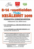 * 8-10 -VUOTIAIDEN (synt. 2008-2010) KESÄLEIRI 19.-20.6 Leirimaksu 30€. * 11-14 -VUOTIAIDEN (synt.2004-2007) KESÄLEIRI 3.-5.7. Leirimaksu 40€. Sisaralennus 5€