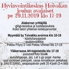 Yläkerrassa 4H-toimistolla jouluinen foto booth –piste, joululahjapaja, järj. Let`s go pojat –hanke ja uusi jouluisen pakopeli avataan! Koko talon yhteinen kinkkuarvonta alakerrassa.