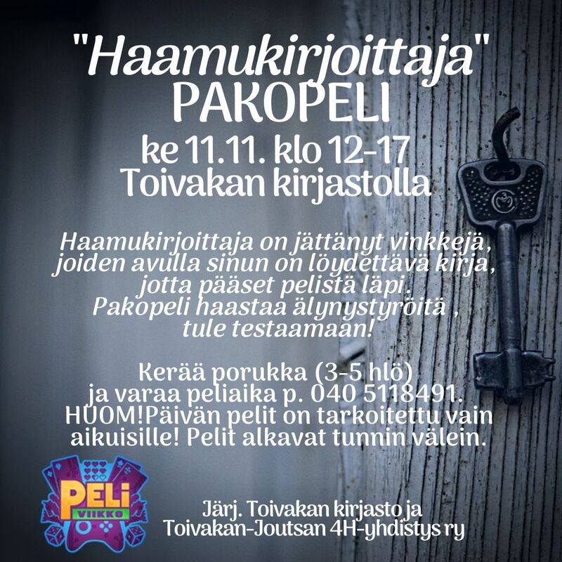 Muista ilmoittautua pakopeliin, jos haluat tulla testaamaan!