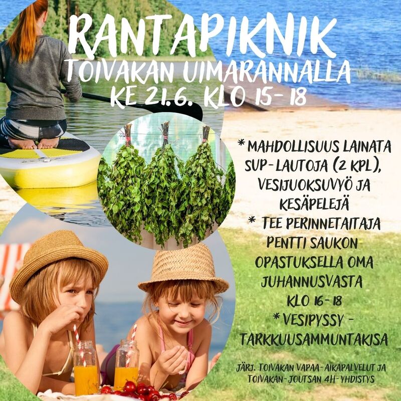 *Mahdollisuus lainata SUP-lautoja (2 kpl), vesijuoksuvyö ja kesäpelejä * Tee perinnetaitaja Pentti Saukon opastuksella oma juhannusvasta klo 16-18 *Vesipyssy -tarkkuusammuntakisa