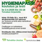 HYGIENIAPASSI koulutus ja testi Toivakassa kirjaston salissa ke 2.4.2025 klo 15-18